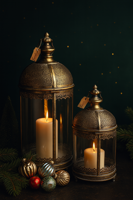 Set aus 2 eleganten Metall-Laternen mit Glas