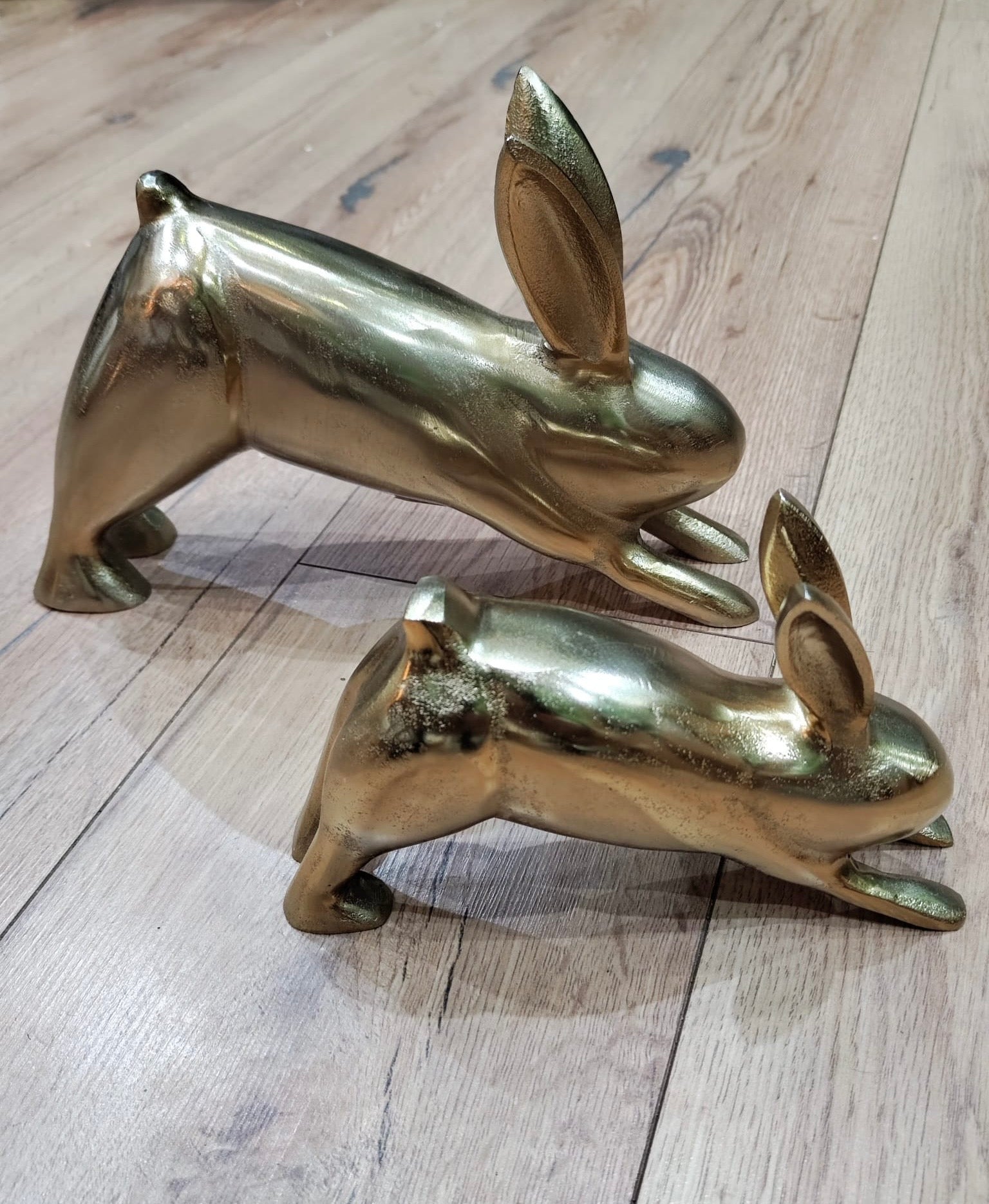 Die Hasen wirken sehr hochwertig und sind ein schöner Blickfang für Kommode, Tisch oder Regal.