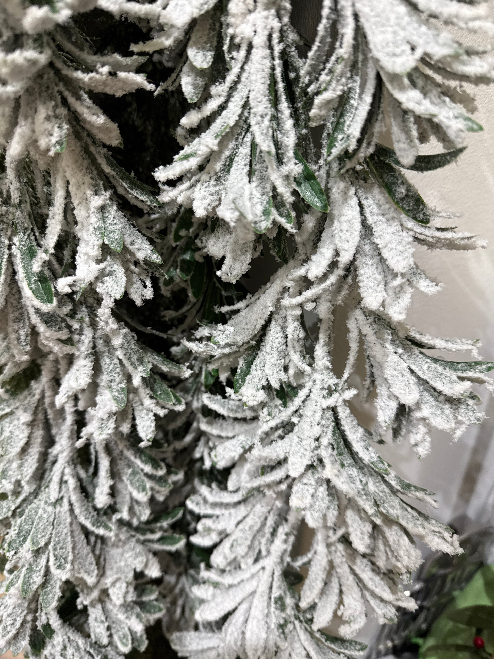 Wunderschöne, dicht gebundene Girlande mit zartem Schneeeffekt – perfekt für eine festliche und elegante Weihnachtsdekoration.