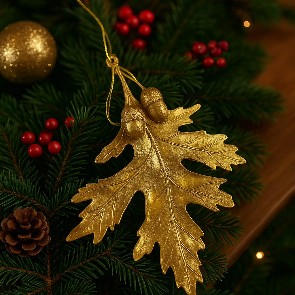 Dekoratives Eichenblatt mit zwei Eicheln – in edlem Antik-Gold.
