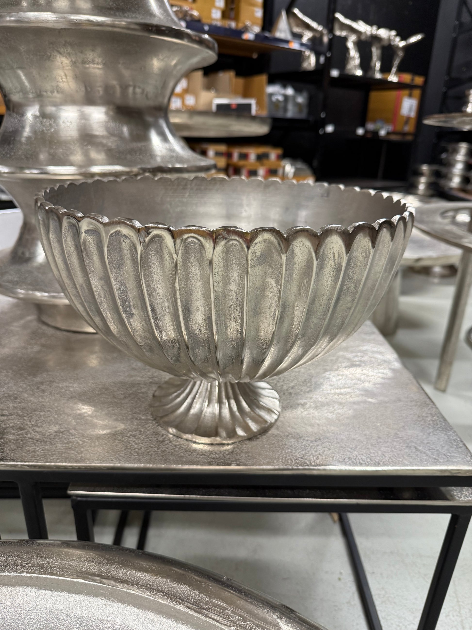 Mit ihrem silbernen Finish und dem edlen Design eignet sie sich perfekt als stilvolle Dekoration, Obstschale oder für festliche Arrangements.