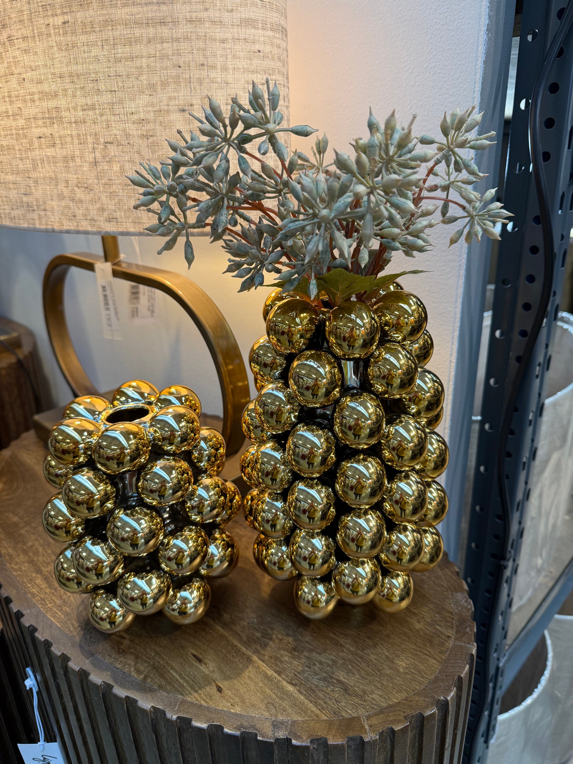 Wunderschöne goldene Dekovase mit edler, glänzender Oberfläche – perfekt als eleganter Blickfang in jedem Raum. Ideal für Trockenblumen, Kunstblumen oder einfach als stilvolles Dekoelement auf Tisch, Kommode oder Fensterbank.