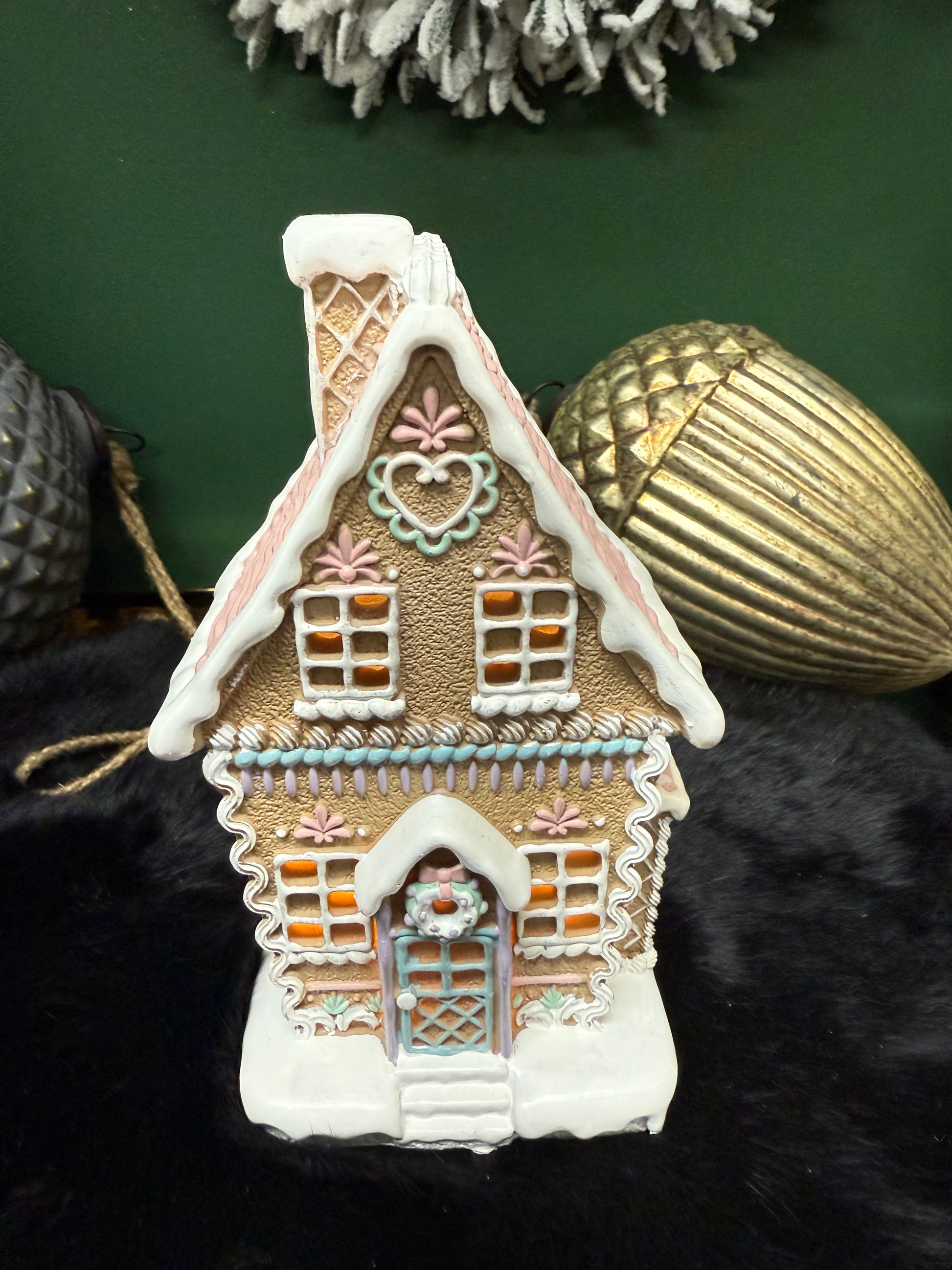 Ein wunderschönes LED-Häuschen im nostalgischen Lebkuchen-Design – liebevoll gestaltet mit zarten Pastellfarben, feinen Details und warmem Lichtschein. Dieses dekorative Häuschen sorgt für eine gemütliche, festliche Atmosphäre und ist ein echtes Highlight in jeder Winterdekoration – perfekt für Fensterbank, Kommode oder festlich gedeckten Tisch.